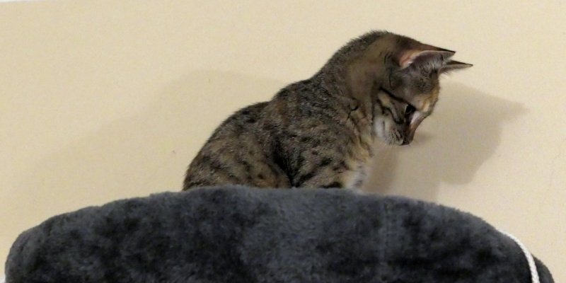 Also starte ich mein Weckprogramm: Ein wilder Hopser aufs Bett, dann ein paar hektische Sprüng...