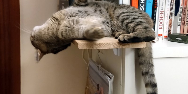 Ich habe den Tag ganz in meinem Reich verbracht, zufrieden, entspannt und rundum glücklich. Alles lief in gewohnter Routine ab – schlafen, dösen, beobachten, nochmal schlaf...