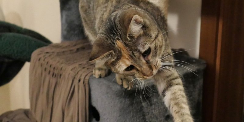 Ich habe mich öfter zurückgezogen – und zwar in mein Katzenbaumhaus. Der Eingang ist mit einem braunen Tuch verhängt, sodass ich mich wunderbar unsichtbar machen kann. Man sieht nur manchmal mein kleines Gesicht daran vorbei schauen. M...